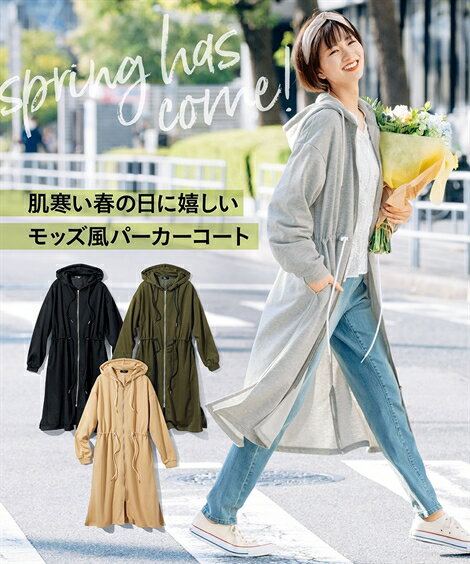 コート 大きいサイズ レディース モッズ風 スウェット パーカー カーキ/ベージュ/黒/杢グレー L〜10L ニッセン nissen