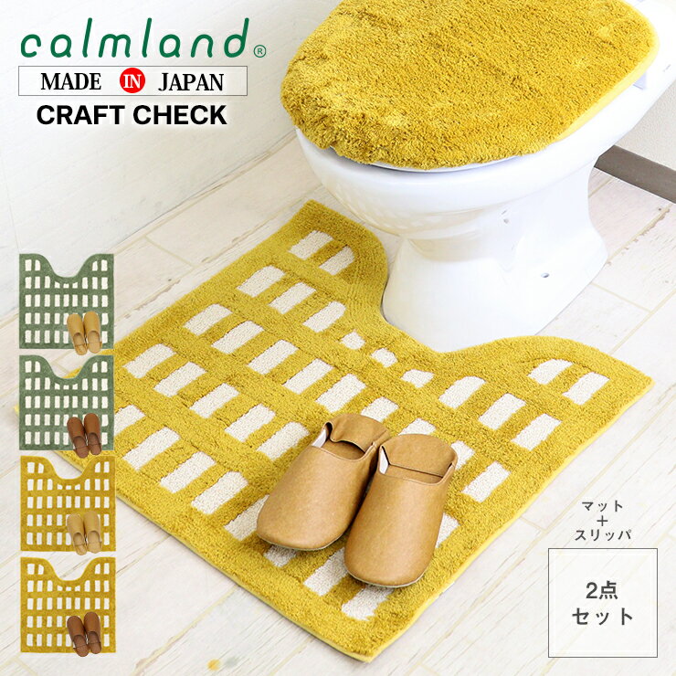 トイレマット 2点セット おしゃれ 北欧 風水 カームランド クラフトチェック 正規店 正規販売店 日本製 イエロー グリーン デザイン トイレタリー ナチュラル シンプル かわいい トイレカバー ブランド ふかふか モダン 高級 綿100%
